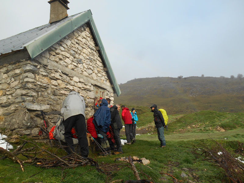 La descente recommande de l'attention pour éviter les glissades. Jacques et moi-même l' expérimentons, sans conséquences. Nous apprécions d'arriver à la cabane les Bordes, où nous déjeunons à l'abri du crachin. Une heure après, saisit par l'humidité et le froid, nous repartons.