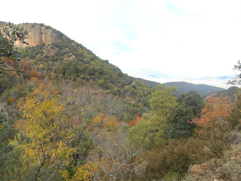 10 h, d'un parking, nous marchons en direction du sud-ouest, derrière l'église. Puis par la piste , ouest S-O, un sentier monte dans le bois vers San Juan de La Peña. Sorti du bois de La Carbonera, la vue splendide, s'étend sur la vallée.