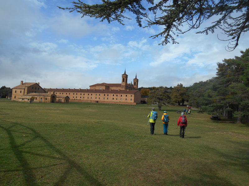 La traversée du bois nous amène sur un immense parc où se dresse l'imposant monastère de San Juan de La Peña Nueva. Les arbres exposent encore leurs feuillages colorés aux teintes automnales. Ce tableau de nature exprime la sérénité.