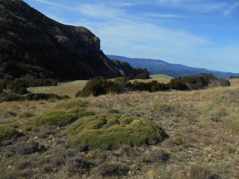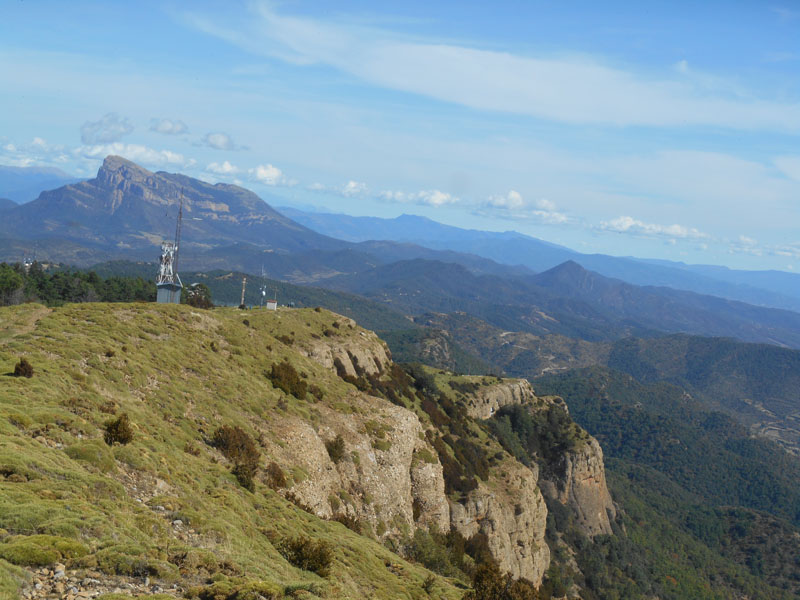 Le 1er groupe approche du sommet. La crête s'est élargie comme un couloir bordé d'échinocactus, ces sympathiques «coussins de belle mère». A 12 h 40, nous parvenons sur un beau promontoire, avec vue à 360 degrés, le pic Cuculo. Les cimes enneigées des Pyrénées, montrent un nombre infini de sommets comme La Collarada, le Visaurin, mais aussi la Peña Rueba, le Castel Mayor, Les Mallos de Riglos, La Osqueta et la Foz de Salinas .