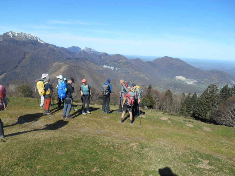La pause terminée, nous repartons plein Est. Une montée raide dans les pentes herbeuses s'élève jusqu'au Mail Arrou. Le vent continue à fouetter les visages. L'ascension se poursuit, c'est à présent le pic de Montaut qui est visé. Ainsi c'est vers midi que nous atteignons le large dôme.