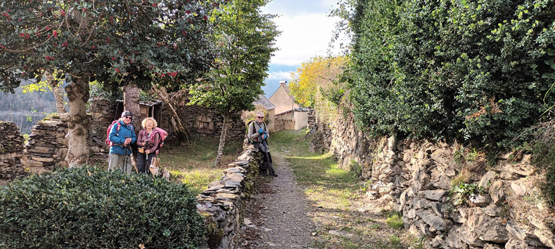 La descente est tranquille. Le bois se franchit aisément. Rencontre des enfants «petits commerçants». Arrivés au village à 15 h 45. Visite du petit village bien arrangé. Échange d'information avec une famille de randonneurs. Retour dans la plaine et pluie. La tempête Ciaran est annoncée
