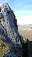 La traversée au-dessus du ravin de Ha, s'avère peu sure . Alors je remonte le couloir pentu et retrouve sur les rochers d'Ilurque les randonneurs. Il est 13 h 15. Je déjeune rapidement et repars par la crête, puis le vallon, où la neige a fondu.