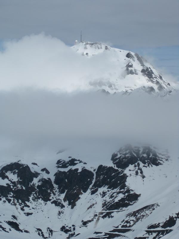 Comme le rideau d’un théâtre, les nuages s’écartent et découvrent le décor splendide des pentes neigeuses des crêtes et des pics, comme le pic du Midi de Bigorre ou le Néouvielle.