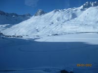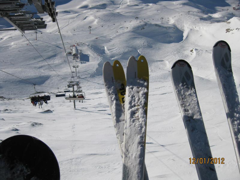 La plupart des après midis, nous montons à Solaise(2560 m) et le secteur des Leissières. Nous essayons le hors piste, dans des terrains de bosses et une neige variée, comme l’on rencontre en ski de randonnée. Nous parcourons le vallon de l’Iseran et skions sur le glacier de Pissailles à 3230 m.. Nous tentons les pistes : « Plan », « M » et la piste noire olympique des femmes « :Rhône Alpes » , qui se présente aussi difficile que celle des hommes. Les conseils de Jean Luc, auront été judicieux et efficaces.