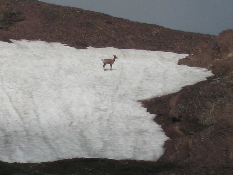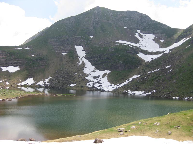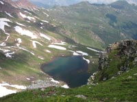 La crête est plus tranquille. Nous montons au pic d'Arri et suivons le fil du relief. Nous apercevons, sur un névé, un troupeau important d'isards. Après le passage de quelques rochers, nous parvenons, à midi, au pic d'Arlet. Nous déjeunons, remarquant le lac et le refuge, tout en bas. L'Est est encombré de nuages, mais on devine les pics du Midi d'Ossau,Balaïtous, Frondellas. Au sud, Aygues Tortes dessine, par ses eaux argentées, des guirlandes. La sierra de Bernera s'enfonce vers le Secus et le Visaurin. Pics d'Arillary, pic Rouge, Souperet, Labigouer, Udapet, se partagent l'ouest et le nord.