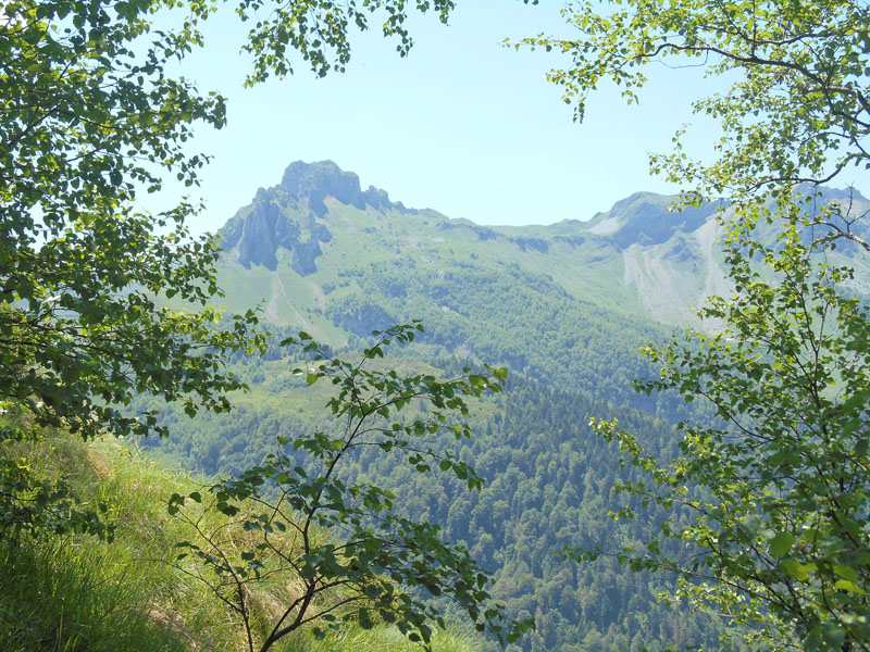Le cheminement suit en balcon le plateau de Laruns, offrant une vue étendue sur la vallée d'Ossau et le pic du Midi d'Ossau. Puis le sentier disparaît dans la végétation. Nous progressons dans les fougères, les orties , les ronces, les arbres tombés, ce qui donne du piquant à cette randonnée sauvage. Malgré sa connaissance des lieux Olivier peine à retrouver le passage.