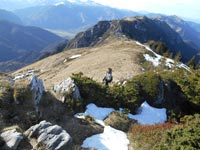 Quelques plaques de neige, encore gelées sont à franchir. Enfin nous parvenons au Pas d'Ilurte. Nous montons, par un névé pentu, sur une crête. Celle-ci nous transporte dans les rochers, à quelques mètres du Sommet de Houndarète. Le panorama est grandiose. Au sud, domine le pic de Bergons, à l'ouest le Cirque de Lescun présente le pic d'Anie enneigé. Nous déjeunons à l'abri du vent.