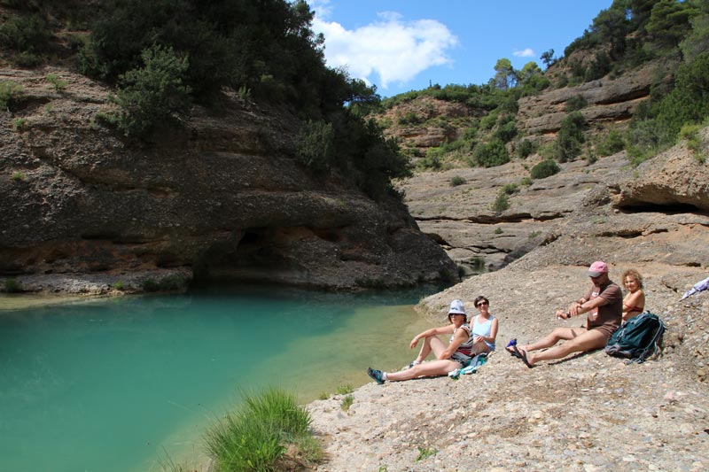 Nous retournons par le lit du rio Alcanadre. La végétation abondante nous protège de la chaleur.