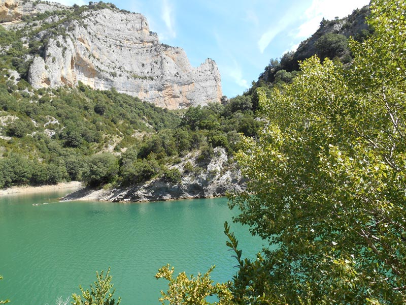 À 8 h 30, nous prenons la route pour Vadiello. Dès 9 h 05, nous suivons la piste Nord, qui passe sous le tunnel et longe le lac. Des chèvres nous interpellent du haut de rochers abrupts. Le sentier, effectue un lacet et grimpe entre végétation et roches.