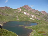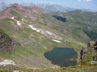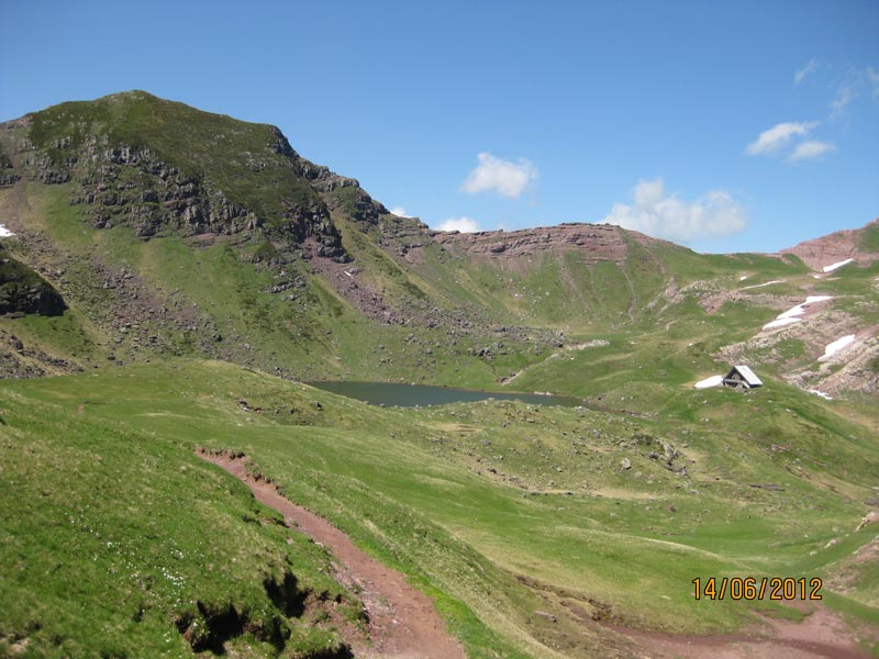 Encore un col à franchir dans la Montagne de Banasse et nous nous trouvons au-dessus du lac d’Arlet (1986 m.) et du refuge.