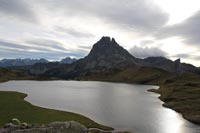 Nous côtoyons le premier des lacs d'Ayous, le lac Roumassot (1845 m.), puis le lac du Miey et ensuite le lac Gentau surveillé par le refuge d'Ayous (1950 m.). Le pic du Midi d'Ossau cherche son image à la surface du lac.