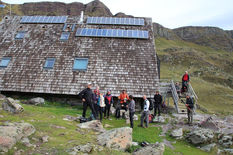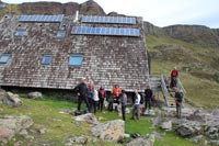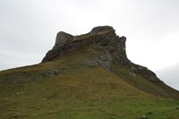 Le pic est raide, entouré de parois verticales et un seul passage, à pied. Une petite plate forme nous permet de déjeuner, d'apprécier du bon vin (de Jacques) et friandises, ainsi qu'une bonne compagnie. Un vautour fauve, puis un gypaète Barbu, viennent nous saluer.