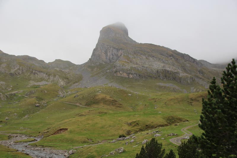 Alors que le ciel se couvre de plus en plus, nous entamons la descente délicate, par des passages glissants au-dessus des à-pics. Nous évoluons prudemment et parvenons au pied du sommet. Nous revenons en effectuant une boucle vers la cabane de La Hosse, longeant le bois des Arazures et le gave de Bious coulant dans des gorges sans fond.