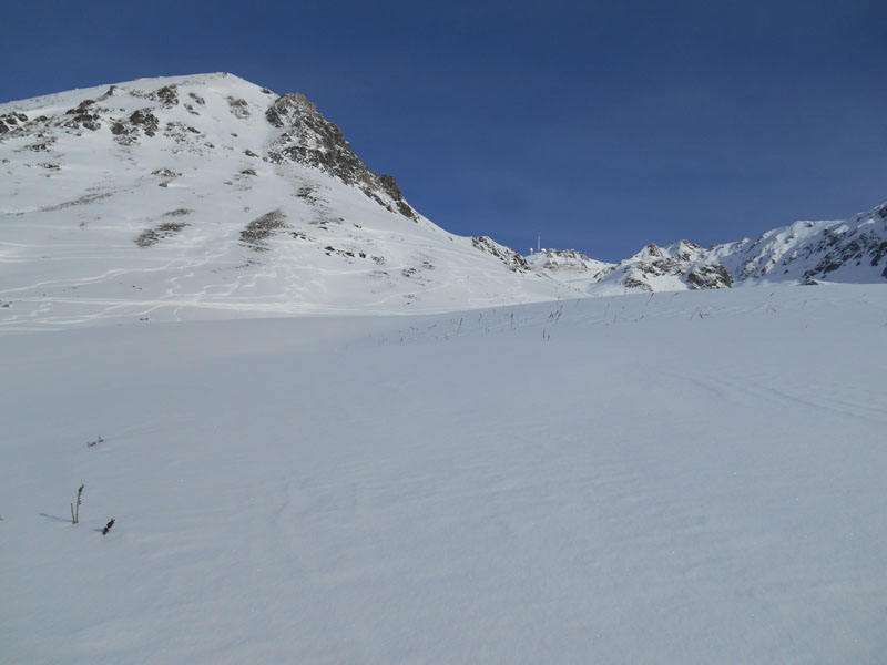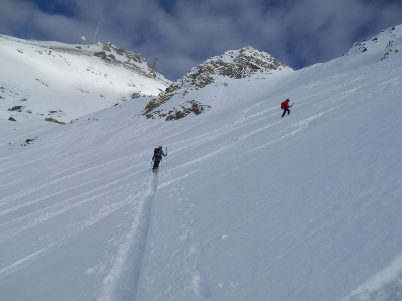 Après Coume Ayse, nous abordons une pente raide, toujours dans la neige poudreuse. Des ornières se croisent de partout. Les conversions s'avèrent nombreuses et épuisantes, elles nous amènent sur un vallon, plus reposant.