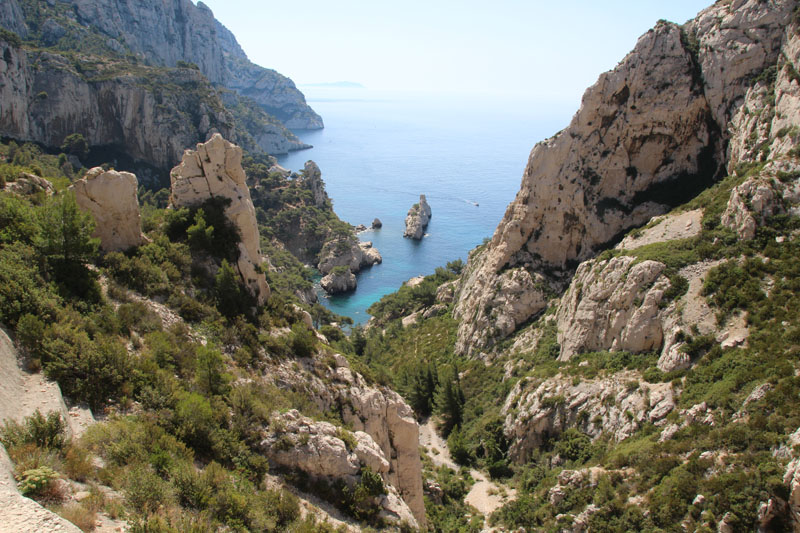 La randonnée qui nous mène de Port Miou, par la calanque de Port Pin, nous invite, par le GR 98, à remonter au col de l'Oule et descendre par un passage raide à la calanque d'En Vau.
