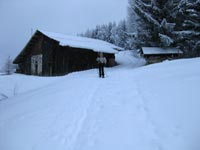 Nous avons effectué des petites randonnées, notamment avec Andrée, utilisant les raquettes et les skis. Ainsi nous sommes montés, au hameau Les Frasses, perdu en pleine montagne et sous la neige. Les cabanes et chalets en bois de mélèze, décoraient une belle clairière, d’où nous pouvions admirer la Pierramenta et le Mont Blanc, avec un chapeau de nuage.