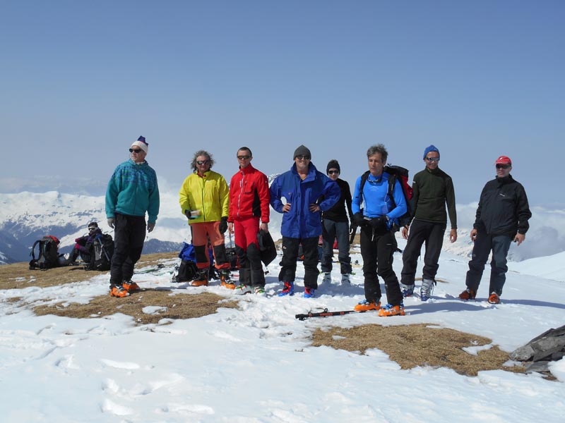 La pente devient très raide et exige de nombreuses conversions. La tentative de monter droit n'est pas une bonne idée. Alors que nos camarades s'approchent de la corniche, Olivier nous entraîne, avec Philippe, à contourner par le col d'Aouet (2184 m.). A 13 h, nous atteignons le Taoulet d'Aouet.