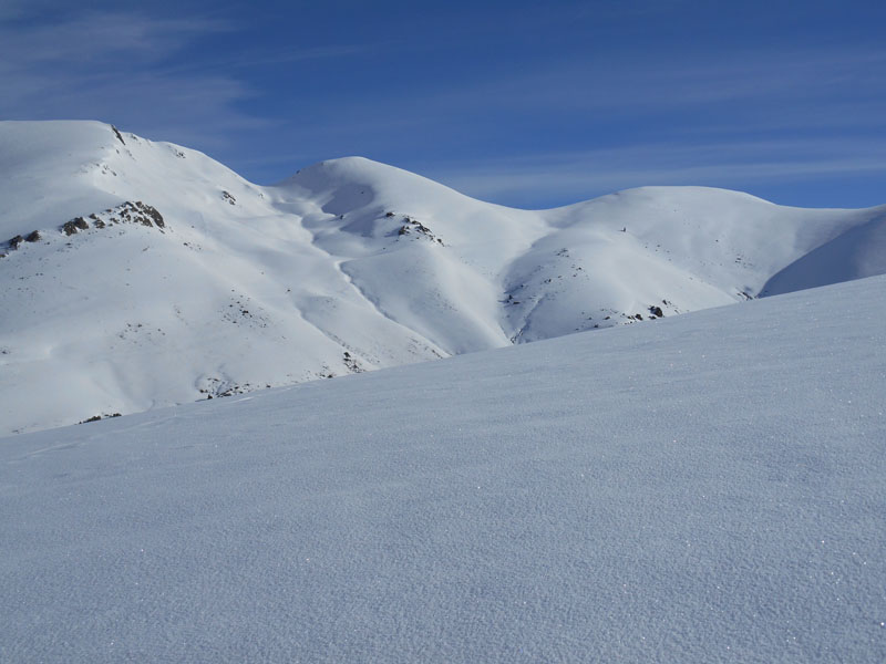 Nous volons sur une neige gelée jusqu'au col de Sahiestre. Puis nous repeautons pour atteindre le sommet suivant. Vers 12 h 30, nous parvenons au Sommet de Pouy Louby. D'autres cimes apparaissent, comme le Mont Né et bien d'autres encore.