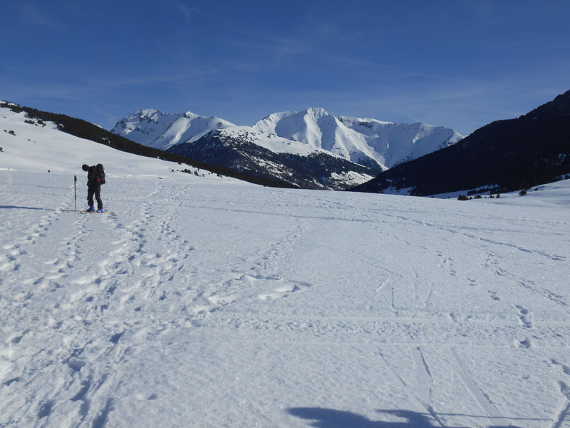 Niveaux:Nous partons du parking de Orri, vers 9 h, sous un soleil éclatant dans un beau ciel bleu. Nous sommes neuf. Le plateau traversé, nous abordons un vaste vallon parsemé de sapins. Quelques passages suivent les pistes (rouges) du secteur de Béret, où aucun skieur ne passe !