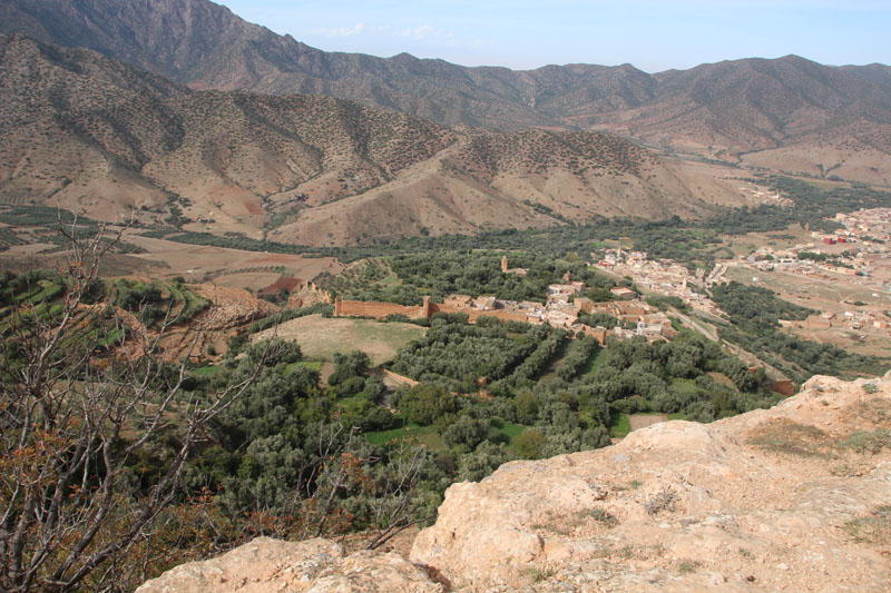 C'est à la kasba (alt. 1000 m.), que nous logeons dans une grande maison en rénovation, construite de terre, de brique et de pierre, enfoncée dans le rocher. La vue sur la vallée au nord est grandiose et splendide. Un sentier raide amène à la ville en moins d'une demi-heure.