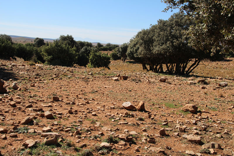 Le plateau du Rekkam se perd à l'horizon, puis se heurte contre la forêt et les montagnes. Loin des pistes des tentes berbères se cachent derrière des chênes verts et quelques oliviers. Les arbres sont bien écartés les uns des autres pour ressembler à une forêt classique. Mais dans un paysage désertique tant d'arbres même éloignés constituent une forêt.