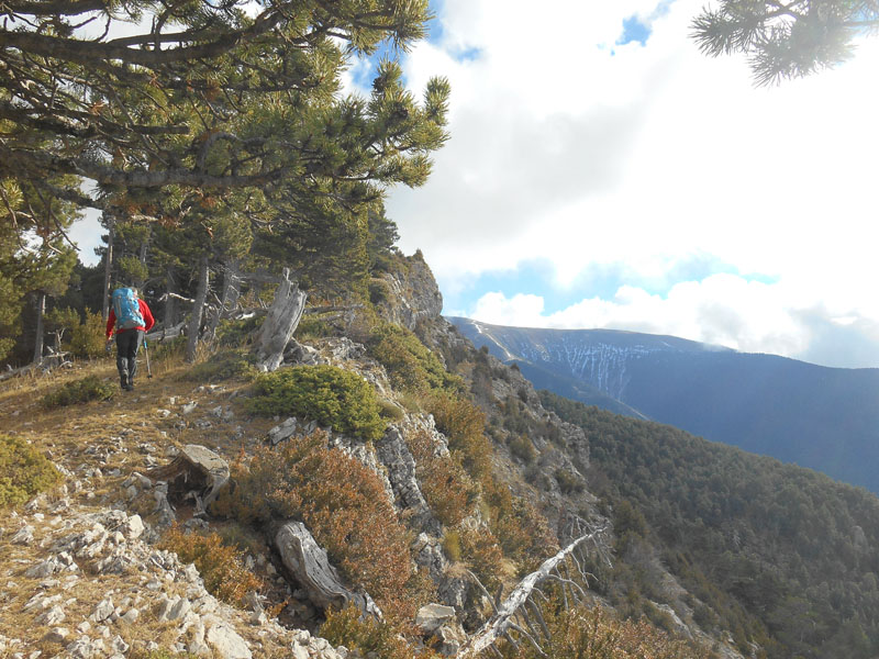 Poursuivant la montée nous nous dirigeons vers une crête, accompagnés par la chaleur surprenante du soleil à cette époque. La crête que nous suivons est en à-pic au sud. Nous la longeons vers l'est et parvenons au sommet Los Azus-El Falcar.