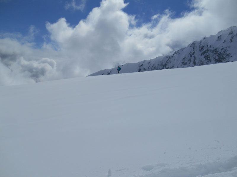 La première partie de la descente est dans une neige convenable, où prendre des virages est un jeu amusant. Mais par la suite la neige devient cartonnée, croûtée, dure à skier et demande de forcer sur les cuisses pour prendre les virages.