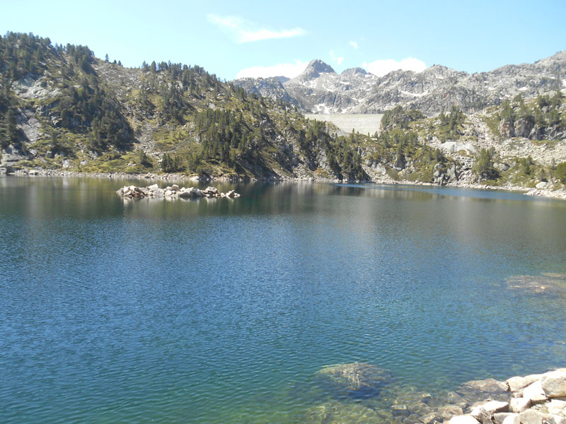 Une montée raide dépasse la cabane de Gréziolles. Nous côtoyons des petits laquets aux eaux limpides. Dominant le lac de Gréziolles, le sentier redescend et longe les eaux claires. Le passage par les blocs rocheux est pénible. Par les Laquettes de Gréziolles, une longue montée nous permet d'atteindre le refuge de Campana de Cloutou et le lac.