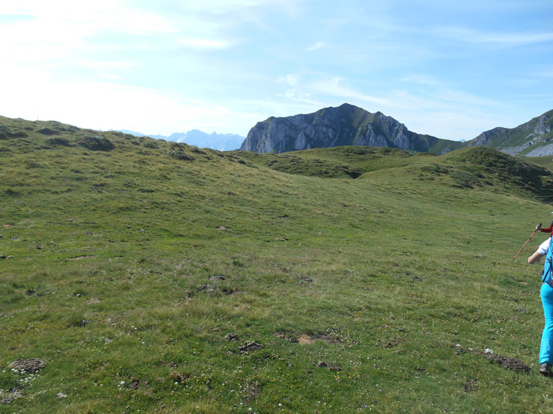 Laissant le col d'Aran sur notre droite, le cheminement monte vers le sud. De nombreuses dolines creusent le terrain. Les fleurs colorées égaient le relief, et les petits bouquets d'edelweiss nous surprennent.