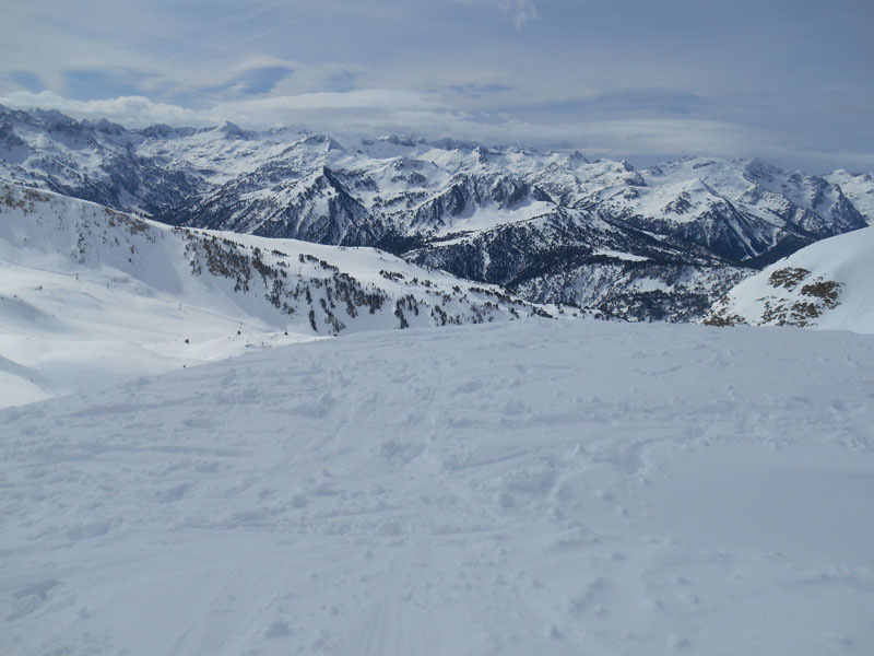 Il est prévu du ski alpin pour aujourd'hui. A 9 h 30, par un temps doux et un soleil voilé nous expérimentons toutes les pistes qui se présentent. La neige est encore agréable à skier. Du secteur Baqueira, nous passons au secteur Bonaigua. C'est enchaînement sur enchaînement des pistes, dans un rythme effréné, que nous dévalons toutes les pentes qui se présentent.