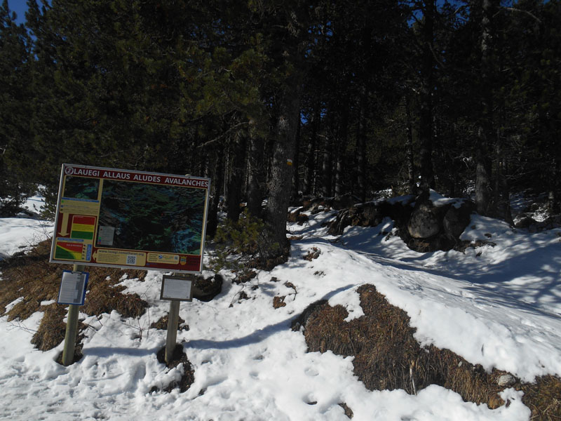 Au col, mes camarades ont eu plus peur que moi, me voyant dégringoler, comme un pantin désarticulé, frôlant une barre rocheuse. La traversée du vallon Tarterau de Salana est plus paisible. Mais il s'agit de descendre la forêt Pletius de Salana. Dans la neige humide et les obstacles variés; petits sapins, fossés, ruisseaux, nous sillonnons comme des artistes de l'équilibre.