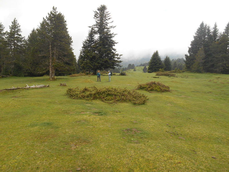 Philippe et Françoise viennent nous chercher, avec Andrée et nous roulons vers la vallée d'Aspe, sous un ciel nuageux. Nous prenons la piste forestière au-dessus du col de Bouesou, jusqu'à la clairière à 1235 m.