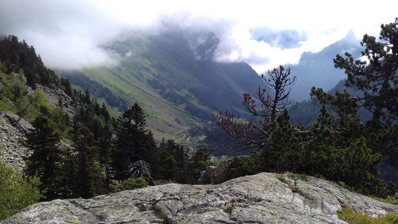 Le ciel est nuageux, avec des apparitions du soleil et la température très fraîche, lorsque nous démarrons du Pont d'Espagne, à 8 h 10.