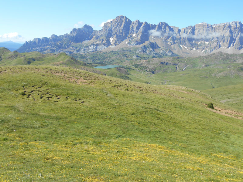 Les fleurs sont abondantes et explosent de couleurs, des hélianthèmes, Lautiers corniculés, bleuets, Iris et même Edelweiss. Hors sentier le cheminement traverse les secteurs Cubilar deros Bueys, Campos ras Planas, pour arriver au « collado Condiana ».