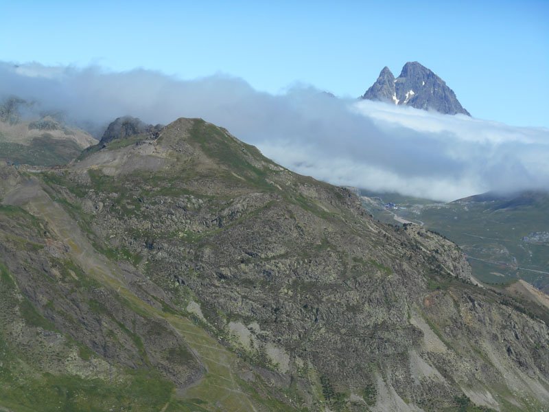 Le pic du Midi d'Ossau est entouré d'une écharpe de nuages. La Pala de Ip ferme l'horizon à l'ouest. Nous parvenons sur un petit pic où un couple de randonneurs se repose, seule rencontre au sommet !