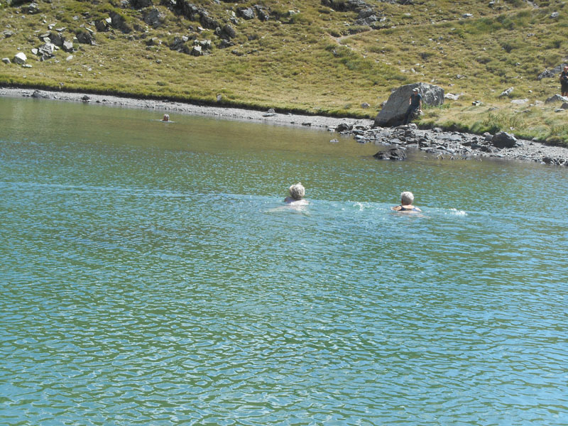 La descente de la crête par bonds sur les rochers est amusante, même si pour certains elle s'avère délicate. Du col nous filons sur le sentier sinueux. Parvenus à l'Ibonciecho, nous profitons de l'attente pour nous tremper les pieds.