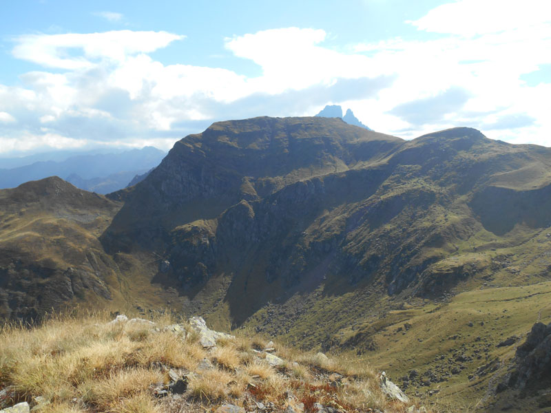 Rapidement nous les rejoignons et dépassons, pour arriver au Soum de La Hourquette de Larry, à midi. La vue est grandiose, entre le pic du Midi d'Ossau à l'est, les cimes au sud et à l'ouest, Visaurin, pic Rouge, La Chourique, Aiguilles d'Ansabère, Anie, Billare, Orgues de Camplong et devant le Soum de Pet de Labigne, etc.