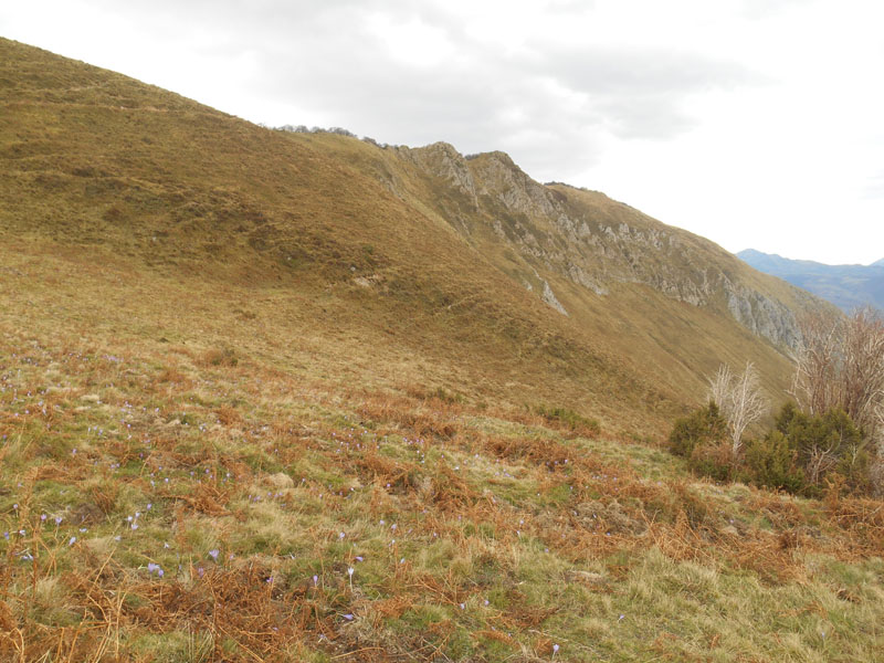 Plus tard nous poursuivons la crête est, moins exposée. Dans les pentes herbeuses, le sentier descend à un petit col, puis remonte brusquement au Soum de Laya. Un passage vers le sud permet de monter sur un petit rocher, que l'un après l'autre nous expérimentons.