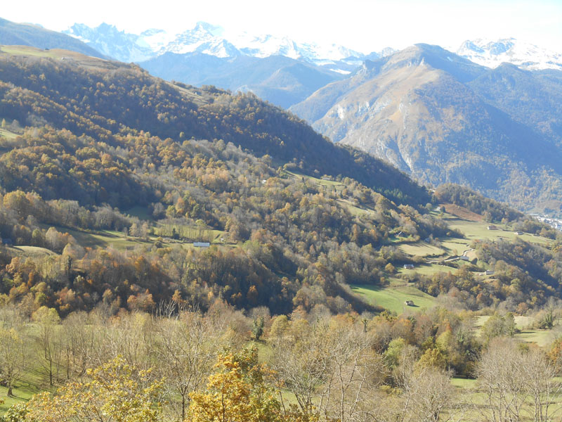 Quittant la crête par un pan d'herbe, en lisière du bois, nous gagnons la piste. Des vautours sont posés sur le pic de Listo, certains prennent leur envol. Quelques passages raccourcissent les longs lacets de la piste, permettant d'écourter la descente. Ensuite c'est l'arrivée au hameau de Listo. 17 h. De nombreuses maisons ont été rénovées. Ce n'est plus le vieux hameau sorti d'un monde ancien, début XXe siècle. Va-t-il garder son caractère authentique ?