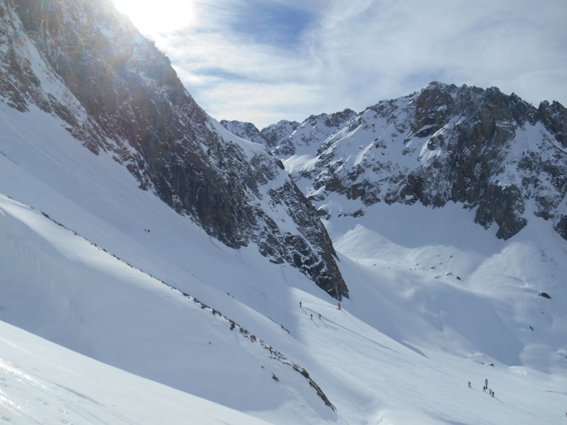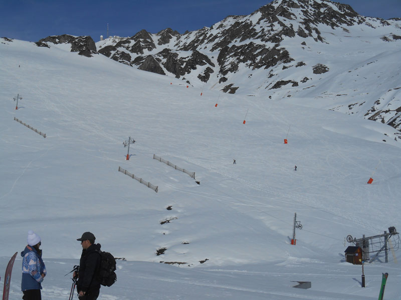 La nouvelle destination sera le col du Tourmalet. Fini pour les émotions fortes ! Nous progressons vers l'est. Coupant les virages par des pentes plus raides, les couteaux sont installés sur les skis. Tandis qu'effectuant des conversions serrées, je rejoins assez haut la piste, mes amis préfèrent gagner directement la piste, moins pentue.