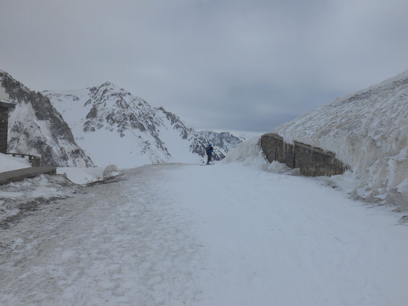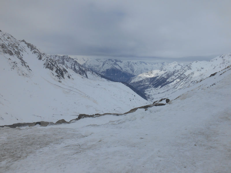 Les traces vont dans tous les sens. Notre trajet amène au col du Tourmalet. Nous y sommes vers midi. Un petit groupe de skieurs et de raquetteurs s'apprêtent à descendre. Nous suivons la crête ventée en direction du nord. Le relief est toujours difficile à appréhender et les traces sont très éparpillées.