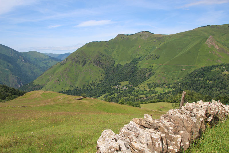 Nous montons les courbes verdoyantes de la Montagne Verte. Au nord, nous observons le hameau de Listo, le pic de Listo, la crête de Coos, le Moullé de Jaüt. Le sentier file en zigzag dans la pente herbeuse abrupte. Arrivés près de l'abreuvoir vers 16 h. C'est dans un bar, en terrasse que nous clôturons l'agréable petite randonnée.
