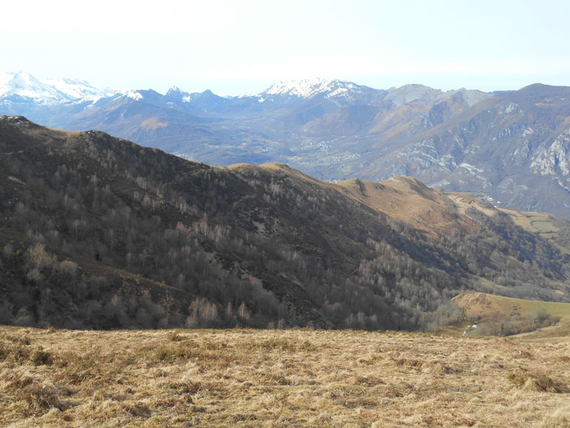 Le cheminement passe sous le Soum de Trées (983 m.). La vue est magnifique, au nord paraissent Lourdes, le pic de Pibeste, le pic du Jer, au sud-est les crêtes de Hautacam. Nous évitons le Tuquet de Lhési, sur la droite et franchissons une bosse, à 1092 m.