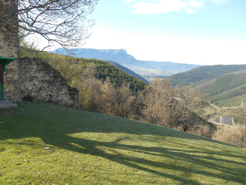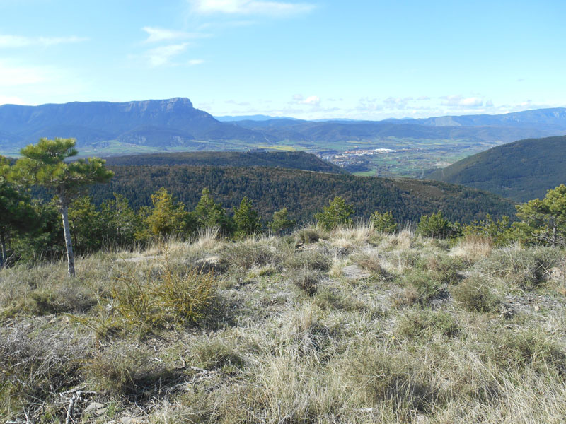 Ensuite le chemin suit une crête, laissant les bois en bas. Celle-ci arrive à un petit sommet Albarin, de la sierra de Badaguäs, où s'élève une antenne relais. Le paysage s'ouvre du sud au nord, avec au sud, le Tozal de Guara, la crête d'Oturia.