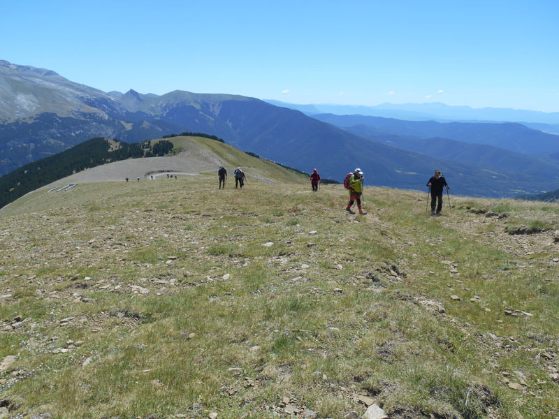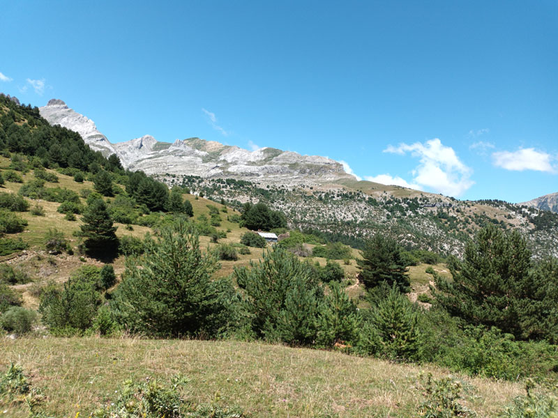 Sous un ciel bleu et un soleil ardent, nous montons par une piste forestière , à l'ouest, côtoyant le GR 11. Plusieurs sentiers se présentent, amenant vers des falaises d'escalade, des canyons ou autres randonnées.
