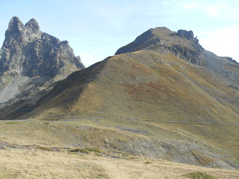 La température est fraîche, le soleil émerge, à peine au-dessus des cimes. Il est 8 h 45, nous descendons sur le pont qui traverse le ruisseau, pour remonter au nord-est. À travers les pentes herbeuses et des sentes qui évitent les ravins et le ruisseau de Sénescau, nous parvenons au col de l'Iou.