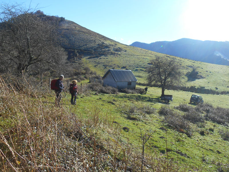 Nous poursuivons la montée dans le bois, au sud, près du Soum de Lorry (1012 m.). Puis le sentier descend vers un vallon. Alors nous parvenons à la cabane d'Auriste (908 m.). C'est une petite cabane, bien équipée.