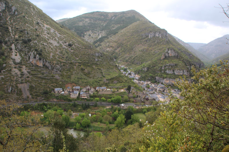 Le parcours longe les gorges du Tarn, pendant une heure. Un sentier grimpe très raide sur la gauche, s'enfonce dans le bois et la végétation. Le cheminement passe dans les secteurs de Planiol, le Claux. Alors alternent les montées raides et les terrains plus doux. Un balcon naturel offre une vue splendide sur les gorges du Tarn. Quatre vautours fauves volent en cercle dans un bal des airs.