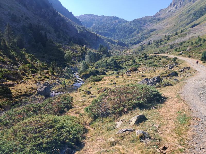 7 h 30, nous partons Andrée et moi-même dans la vallée de Barèges et le plateau du Lienz. Le ciel est bleu et le soleil perce des ses rayons les frondaisons et le haut des crêtes. La température est élevée, dépassant les 20 degrés.
